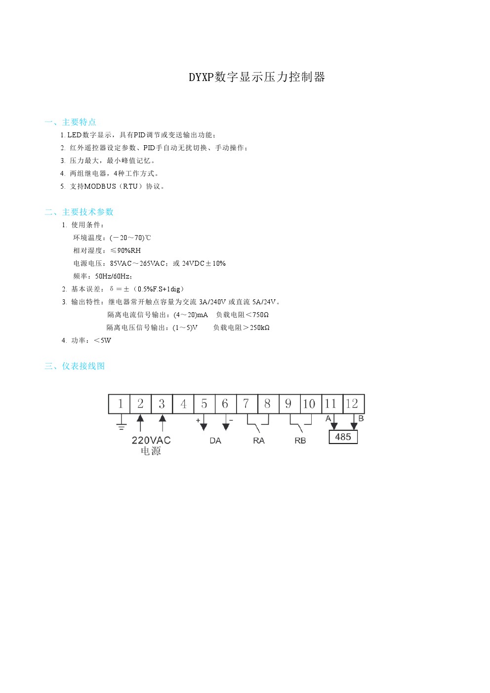 DYXP數(shù)字顯示壓力控制器