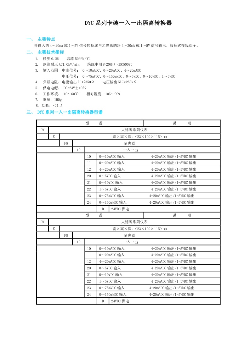 DYC系列卡裝一入一出隔離轉(zhuǎn)換器