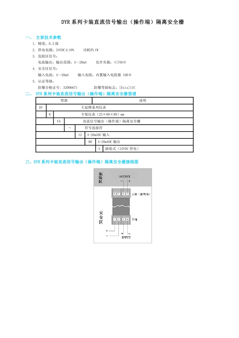 DYR系列卡裝直流信號輸出(操作端)隔離安全柵