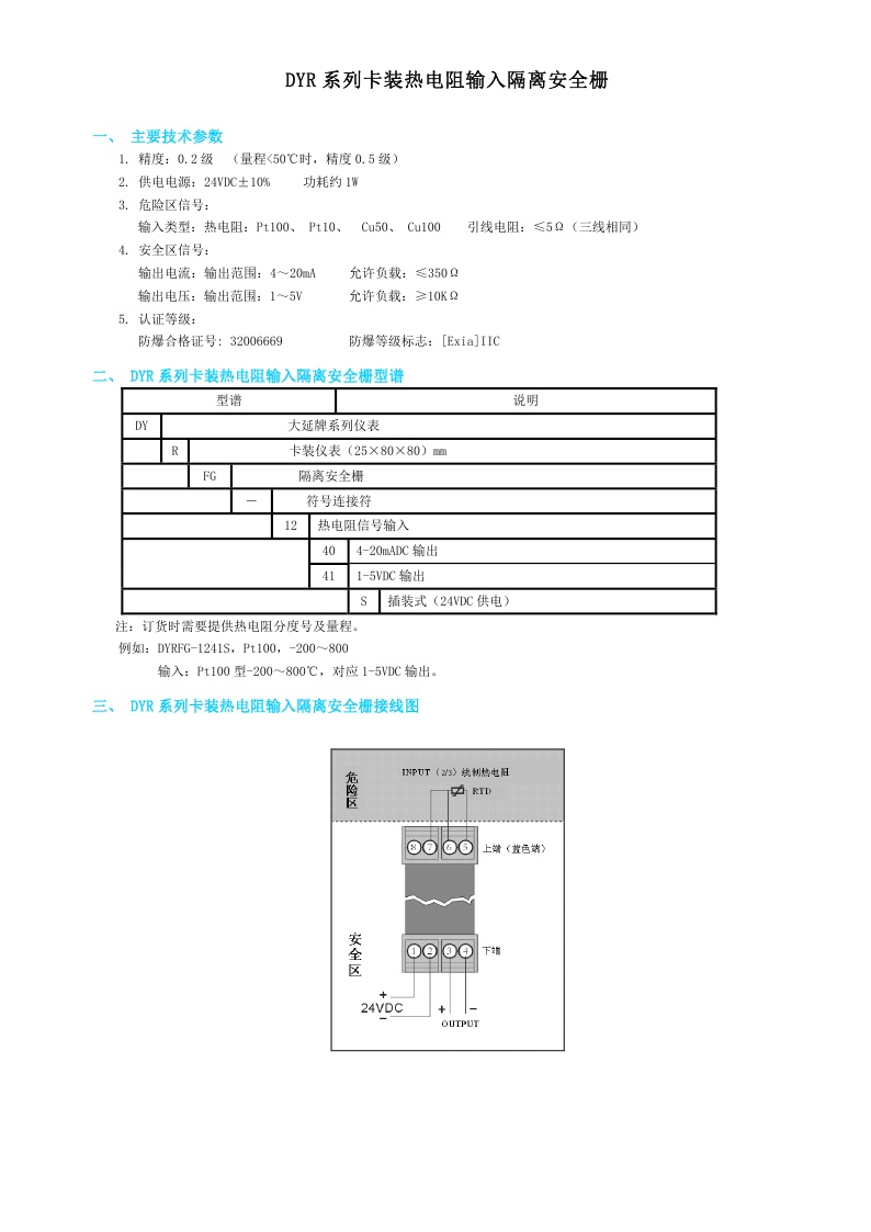 DYR系列卡裝熱電阻輸入隔離安全柵