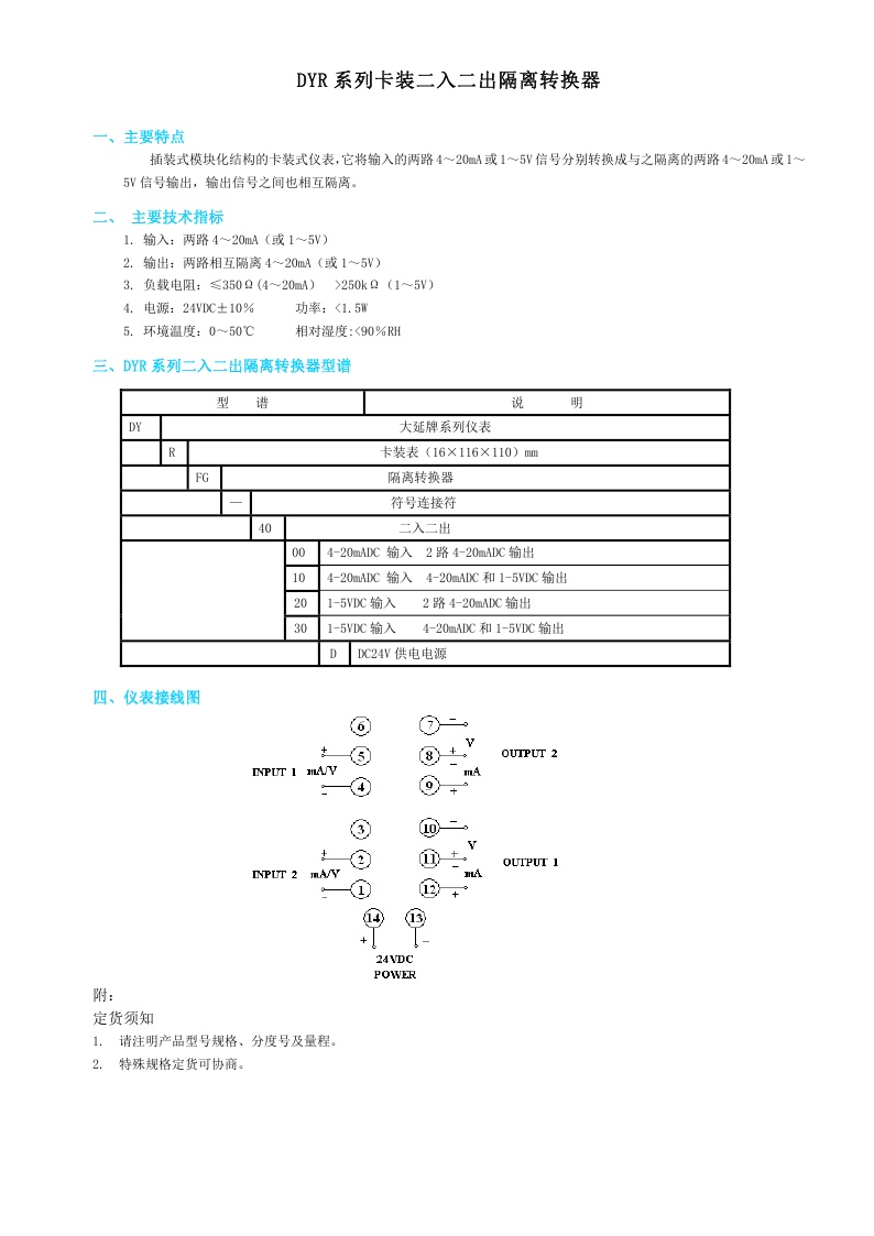 DYRFG-3100系列卡裝一入二出隔離轉(zhuǎn)換器