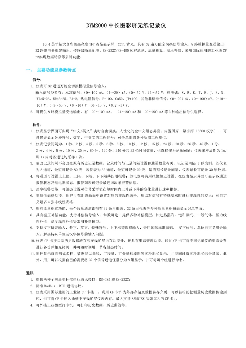 DYM2000中長圖彩屏無紙記錄儀
