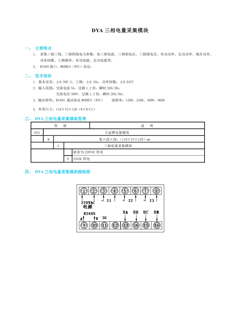 DYA三相電量采集模塊