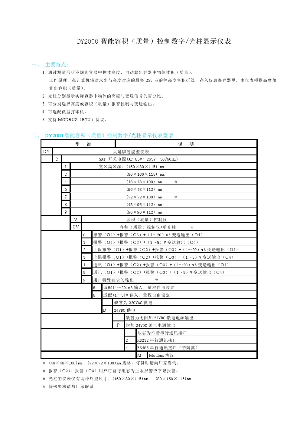 DY2000(V)智能容積(質(zhì)量)控制數(shù)字/光柱顯示儀表
