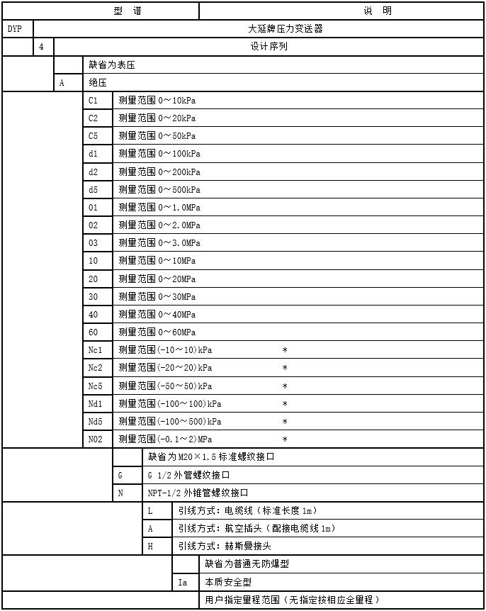 四、 DYP4000系列精小型擴散硅壓力變送器型譜