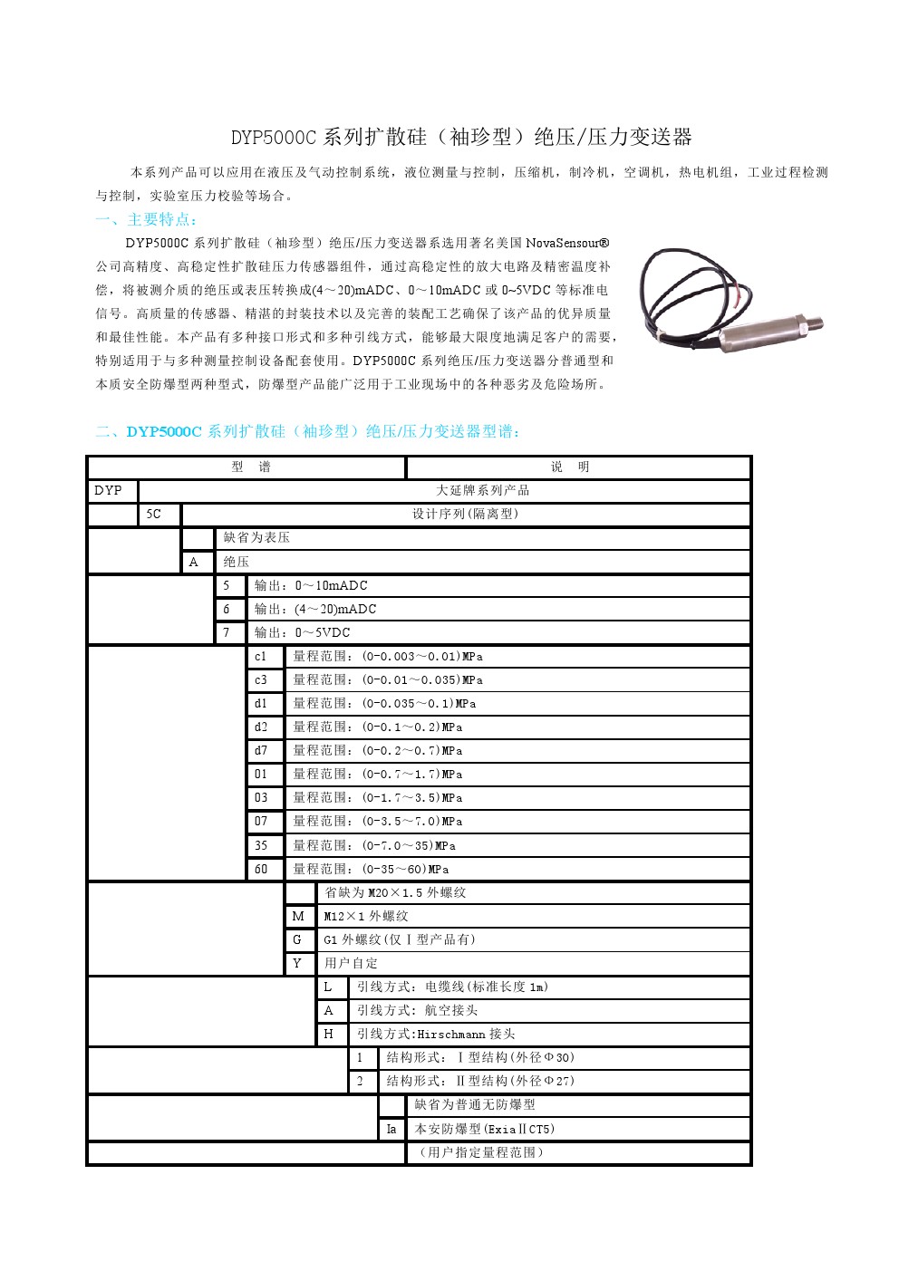 DYP5000C系列擴散硅(袖珍型)絕壓壓力變送器
